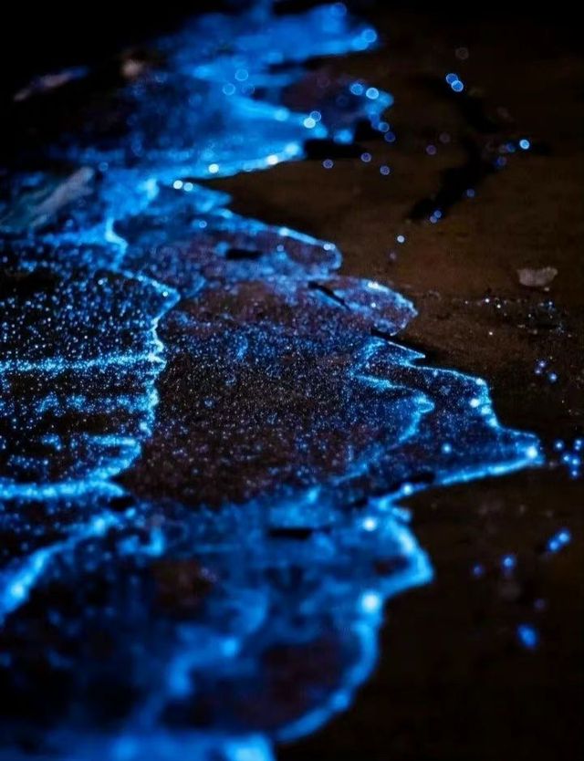散發(fā)著藍(lán)色熒光的浪花。