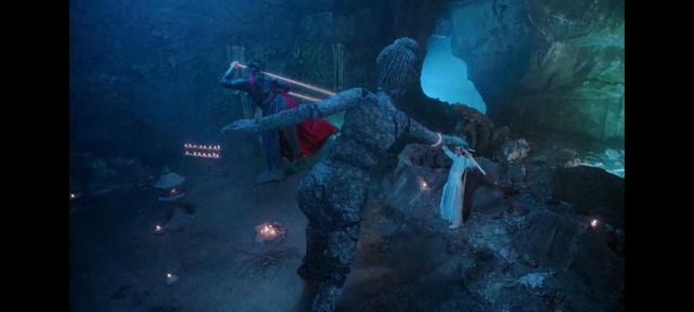 玉初瑤害怕的往藍忘機身邊靠了靠,抓緊他的衣袖跟其他人走了進去,來到了一個石像面前打量著