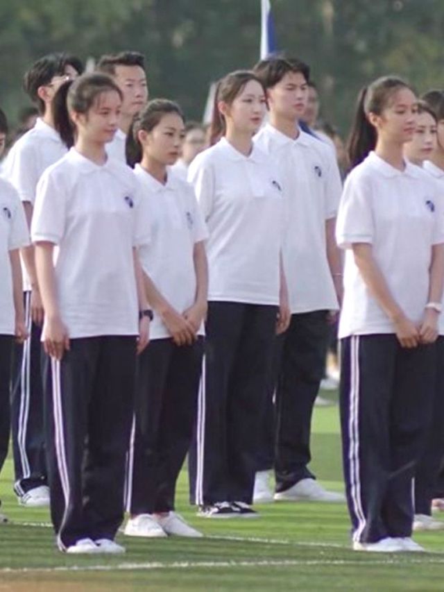 學(xué)校操場上,學(xué)生們整齊的排好隊,前方有主席臺是學(xué)校的各級領(lǐng)導(dǎo)