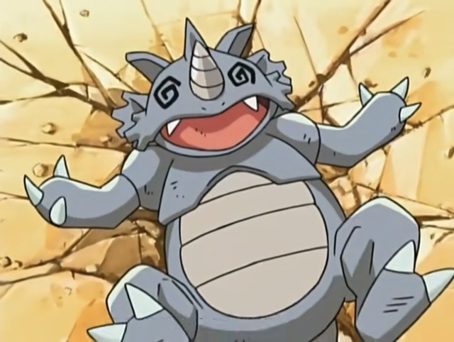 緊接著放出了下一只小精靈,是擁有地面和巖石雙屬性的鉆角犀獸。