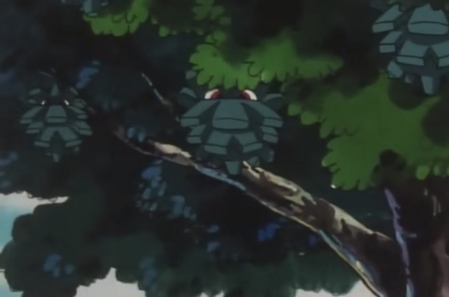 小智抬頭望了一眼樹冠,上面確實(shí)有很多像松果形狀的神奇寶貝,于是便順勢打開了神奇寶貝圖鑒。