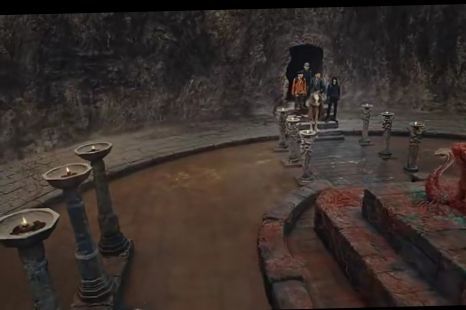 很快便來到另一個地方,這里中間有個大的湖泊,而水中間的空地上面放著一個紅色的棺材??
