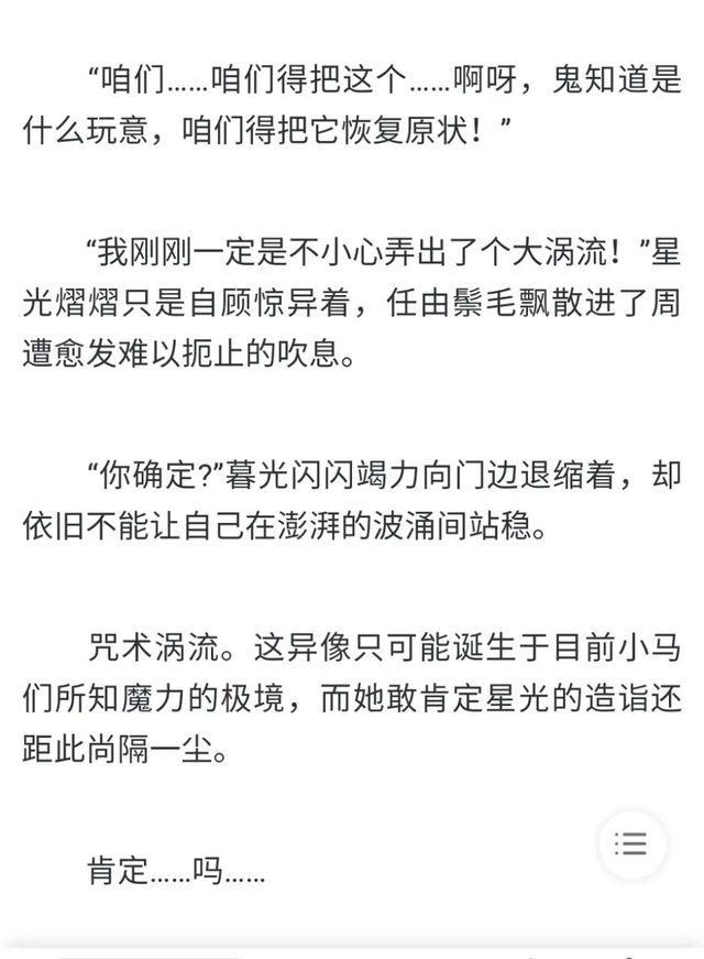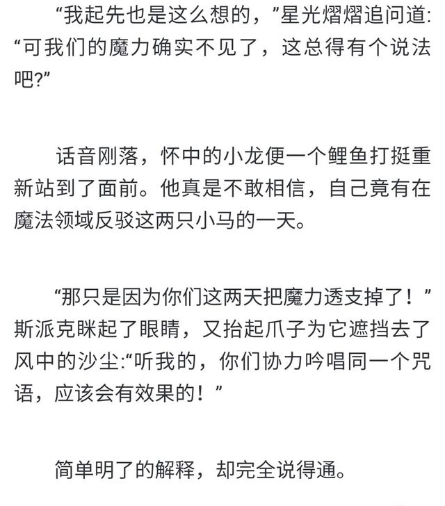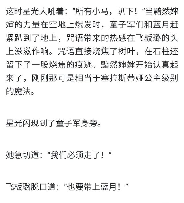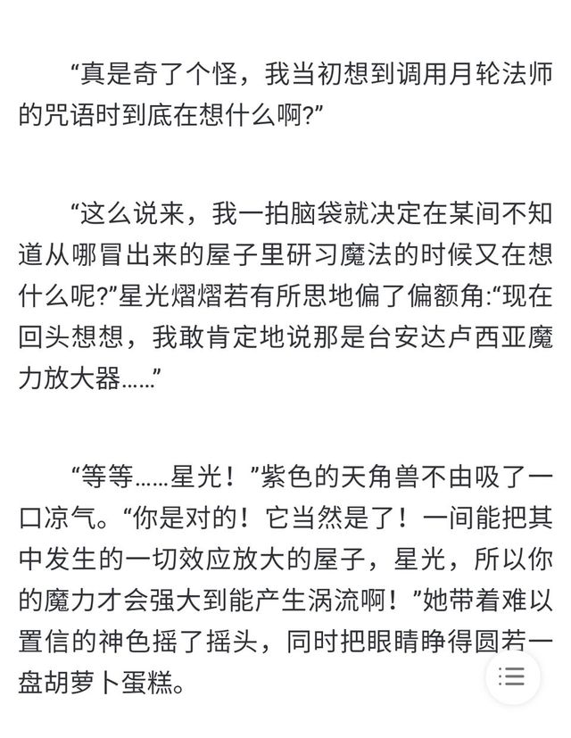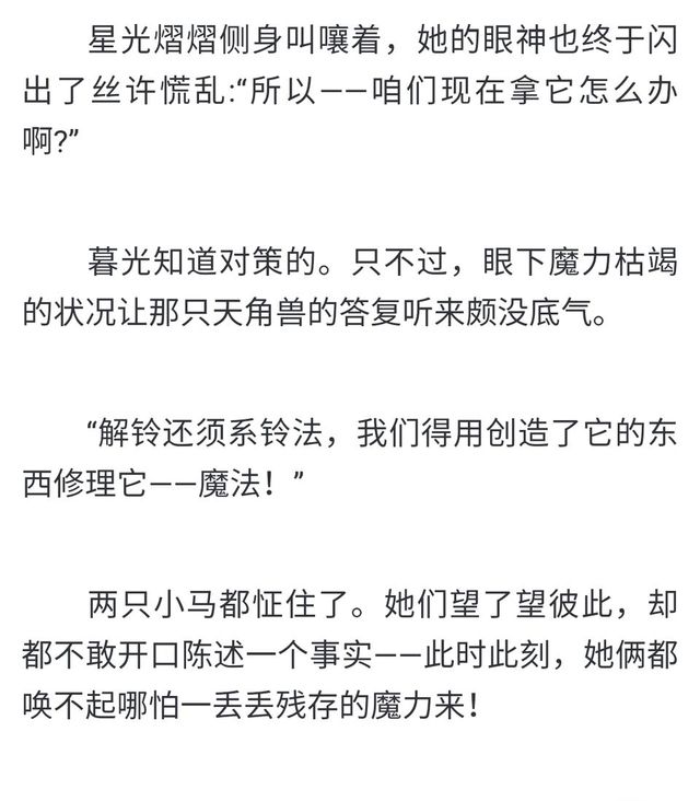 作者還有一些細(xì)節(jié),星光可以施展獨(dú)角暮無(wú)法使用的高級(jí)的變齡魔法,師徒倆在研究咒語(yǔ)時(shí)同時(shí)有成果,結(jié)果也同時(shí)把魔力耗盡了。種種跡象可以說(shuō)明,星光其實(shí)和天角暮是差不多的水平,除了本身的魔力差距之外。
