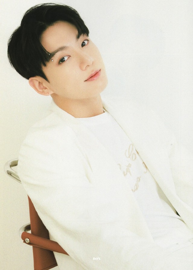 田柾國去翻閱著,找出一本還未拆封的雜志。遞給小女生,小女生說了“謝謝”后,走時還跟他說了一句話。