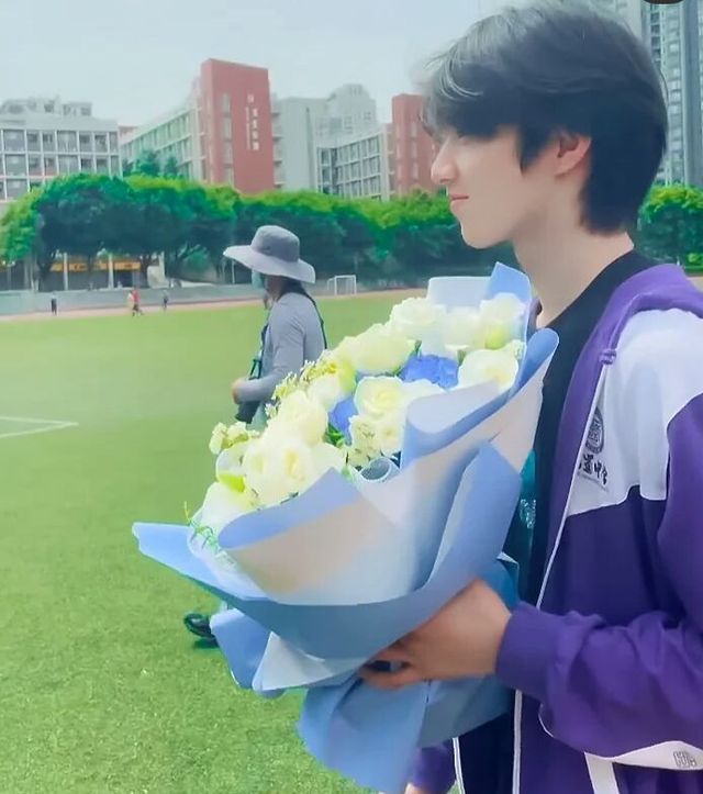 劉耀文這是一個(gè)學(xué)姐送的,說(shuō)送新生花