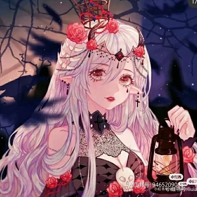 上官榮雪看著眼前的人眼神是冷漠的頭發(fā)是銀色身穿黑色的禮服長(zhǎng)裙頭戴玫瑰花的牛角皇冠耳朵是精靈耳