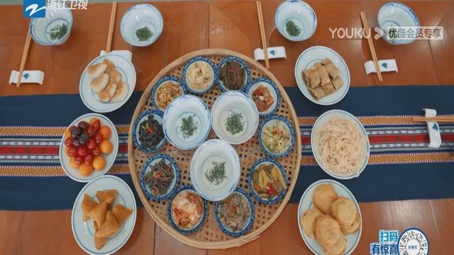 導演歡迎大家來到下午茶時間,畬族的下午茶茶點也非常有特色,有油燜茭白、蕨菜等十道菜,被稱為下午茶十小碟。