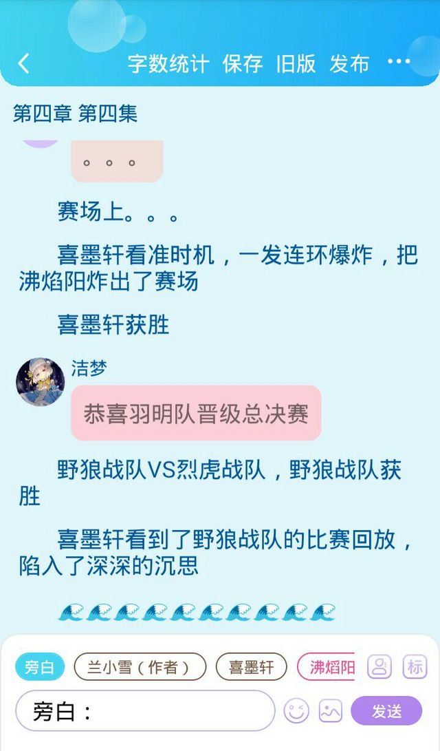 蘭小雪(作者)我最近沒有靈感了,所以這幾篇的字數(shù)會很少,也可能會斷更