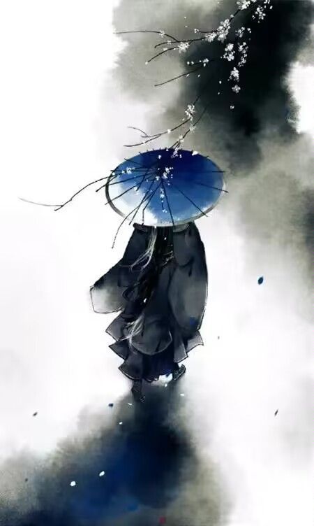 嫣兒?陌生而又熟悉的名字,是在叫我嗎?你小跑著,拋下一切只管向那光處奔去。愈來(lái)愈近時(shí),你才看清那景、螢火聚焦之處,皆一人。那人一身長(zhǎng)袍,白衣黑發(fā),衣和發(fā)都飄飄逸逸,不扎不束,微微飄拂,襯著挺直的身影,淡藍(lán)色的油紙傘就這樣靜靜地?fù)卧陬^頂,遮住了整個(gè)發(fā)間。雖背對(duì)而行,但風(fēng)儀不減。