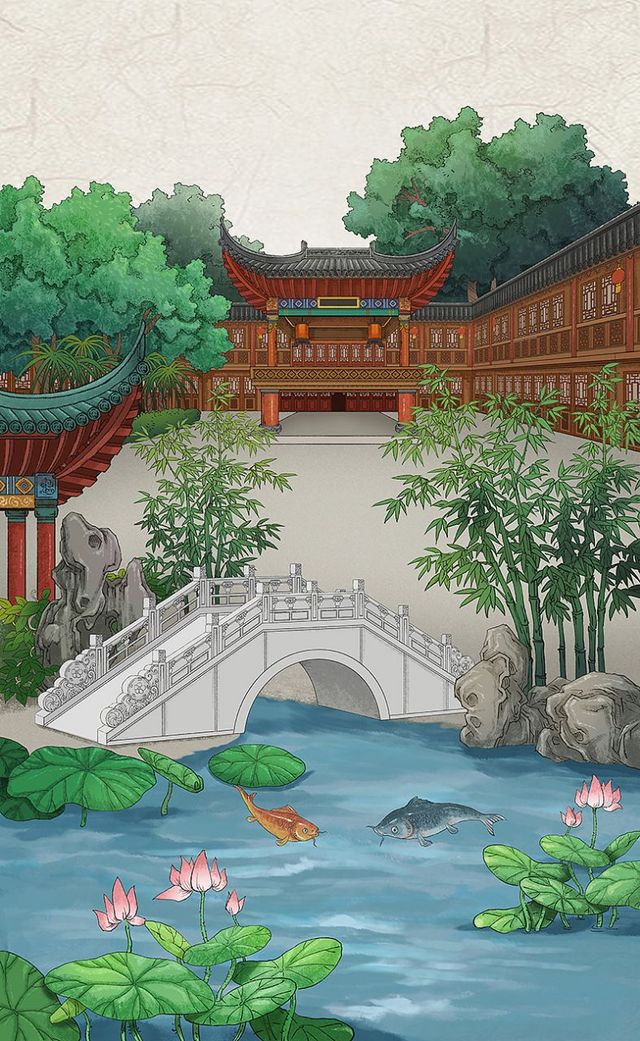 上了石橋上面,他們二人站在上面,看著水中的荷花。